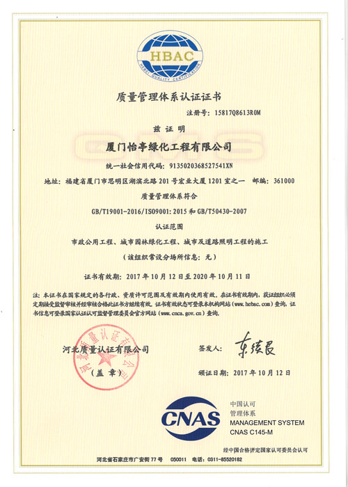 質(zhì)量管理體系認(rèn)證證書(shū)